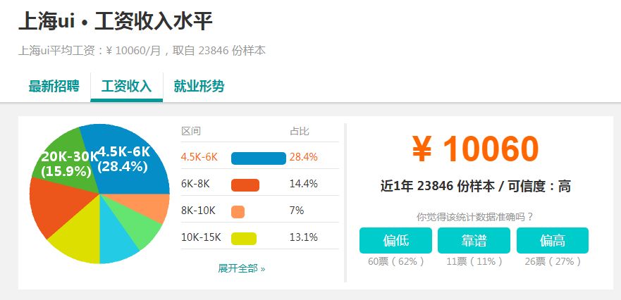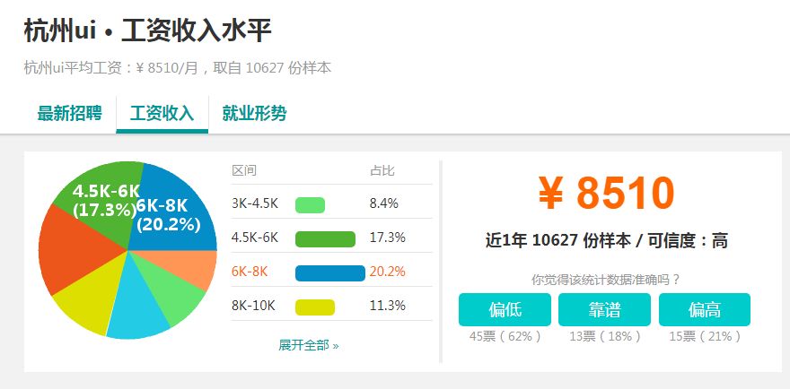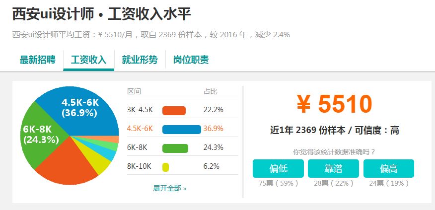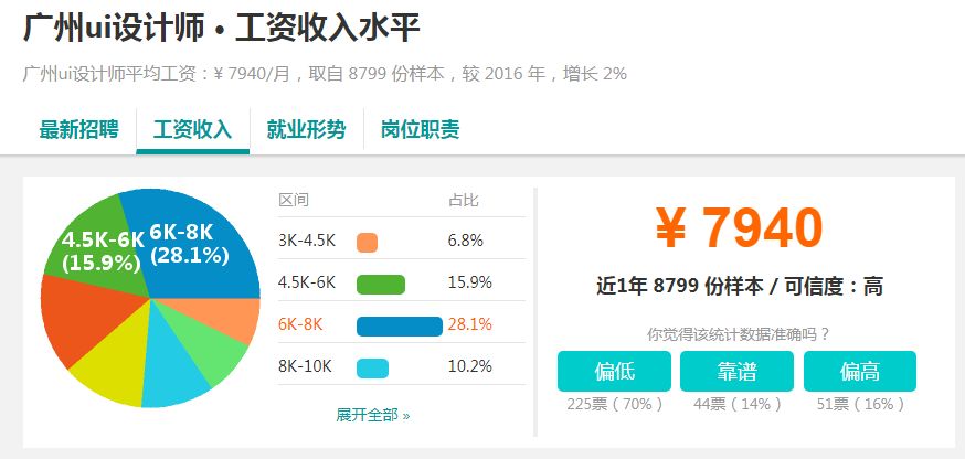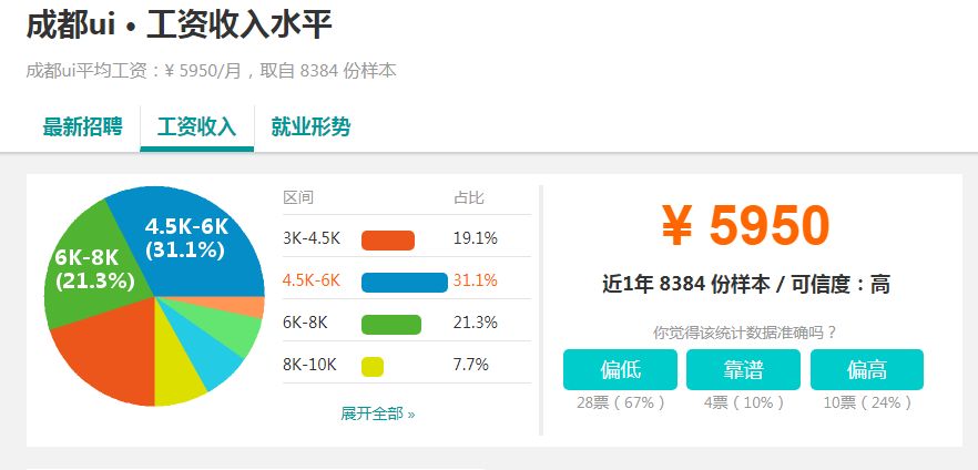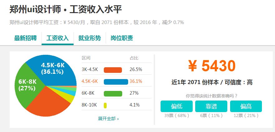 而对于刚入行者,或者应届毕业生,UI工资一线城市4-8k,二三线3-5k。所以,如果你是刚毕业,或者刚入行,不要期望你的工资会很高,即使在北京上海这样的大城市,5-6千的工资就已经很不错了。