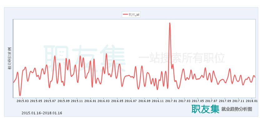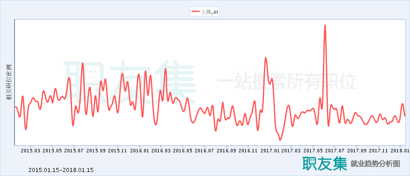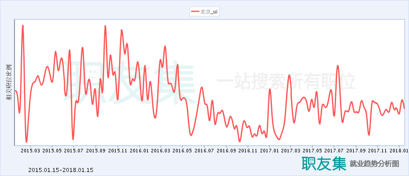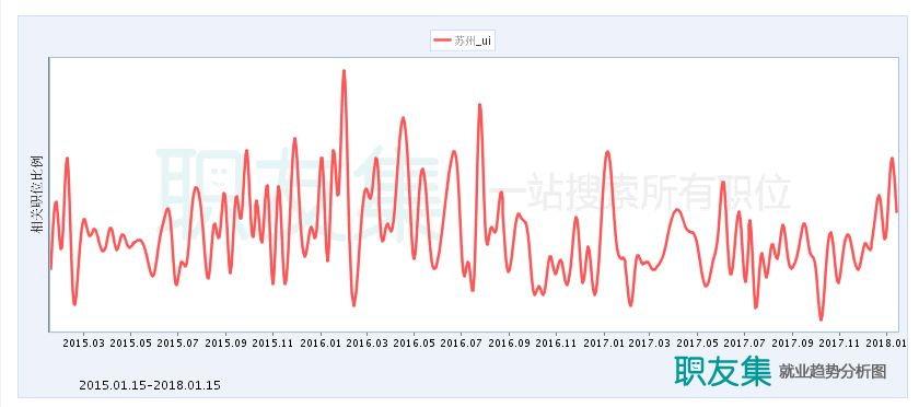 从下面这些图,你可以看到:整体趋势趋于平缓,但需求量还是有不少的。因为随着人工智能、智能硬件等的快速发展,社会对UI/UX的需求仍然是比较大的。