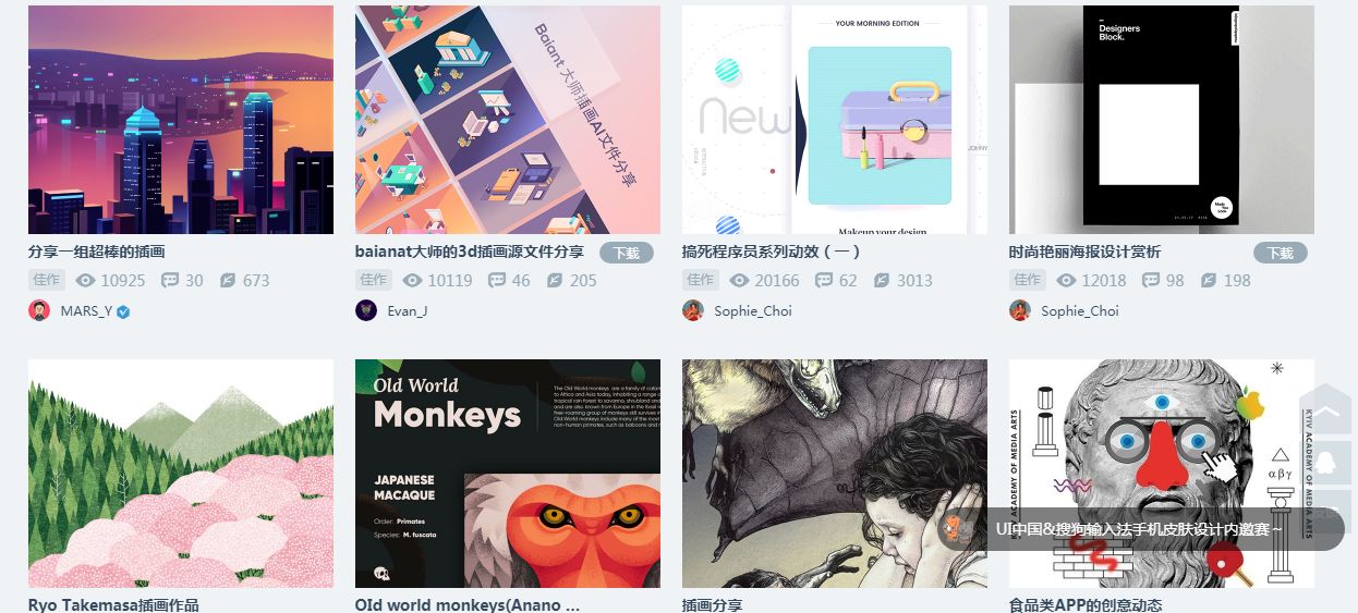 站酷、UI中国、Behance、Dribbble这些设计师经常去的网站上,每天都会发布很多非常棒的设计作品。