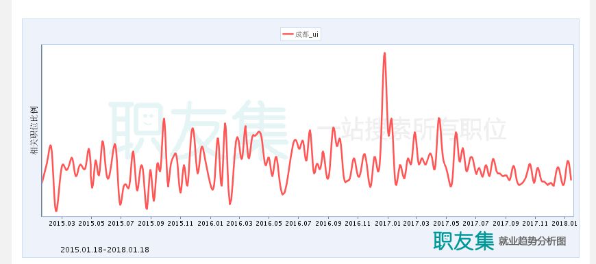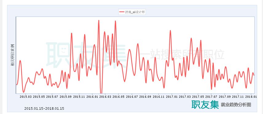 我选取几个城市,可以大体了解一下从2015年1月到2018年1月这三年时间里,UI设计职位的大体趋势。
