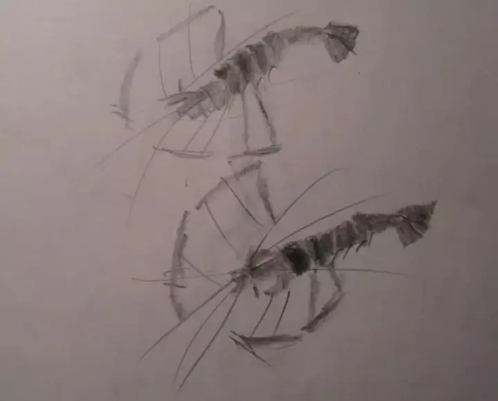 收藏家学成之后,重新出山,而假画贩子的仿造技法没有提升,所制造出来的赝品被收藏家轻松识破。于是假画贩子也开始尝试不同的画虾手法,大多都是徒劳无功,不过在众多尝试之中,还是有一些赝品骗过了收藏家的眼睛。假画贩子发现这些仿制的赝品触须蔓长,通身作半透明状,并且画的虾的细节十分丰富,如图 7-5 所示。于是假画贩子开始大量仿造这种画,并拿到市面上销售,许多都成功地骗过了收藏家。
