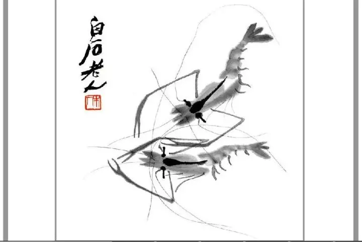 上面的描述可能有点抽象,让我们用收藏齐白石作品(齐白石作品如图 7-3 所示)的书画收藏家和假画贩子的例子来说明。假画贩子相当于是生成器,他们希望能够模仿大师真迹伪造出以假乱真的假画,骗过收藏家,从而卖出高价;书画收藏家则希望将赝品和真迹区分开,让真迹流传于世,销毁赝品。这里假画贩子和收藏家所交易的画,主要是齐白石画的虾。齐白石画虾可以说是画坛一绝,历来为世人所追捧。