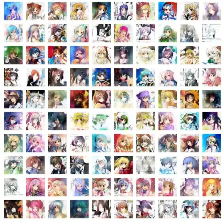 训练完成后,我们可以利用生成网络随机生成动漫头像,输入命令如下:
