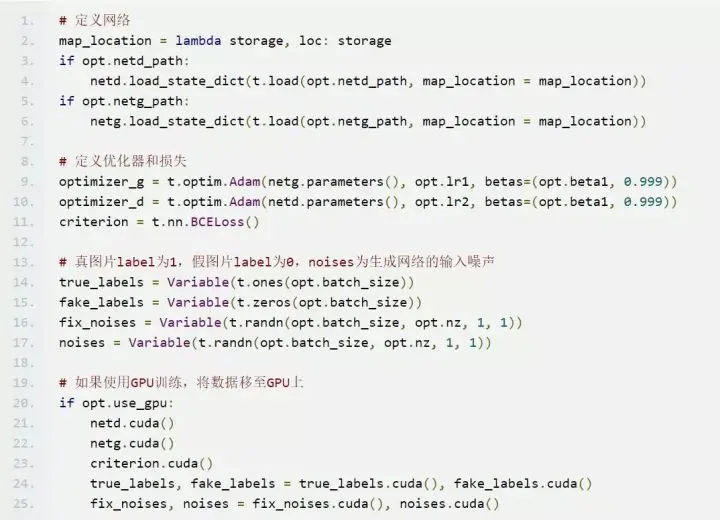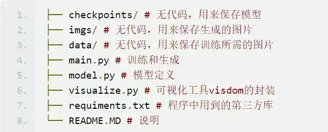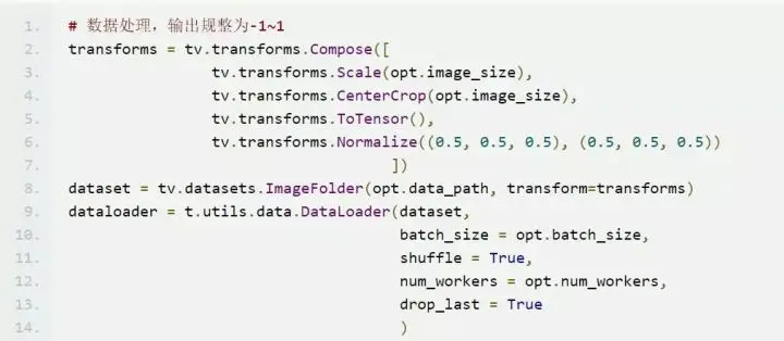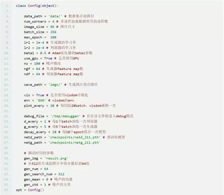 这些只是模型的默认参数,还可以利用 Fire 等工具通过命令行传入,覆盖默认值。另外,我们也可以直接使用 opt.attr,还可以利用 IDE/IPython 提供的自动补全功能,十分方便。这里的超参数设置大多是照搬 DCGAN 论文的默认值,作者经过大量实验,发现这些参数能够更快地训练出一个不错的模型。