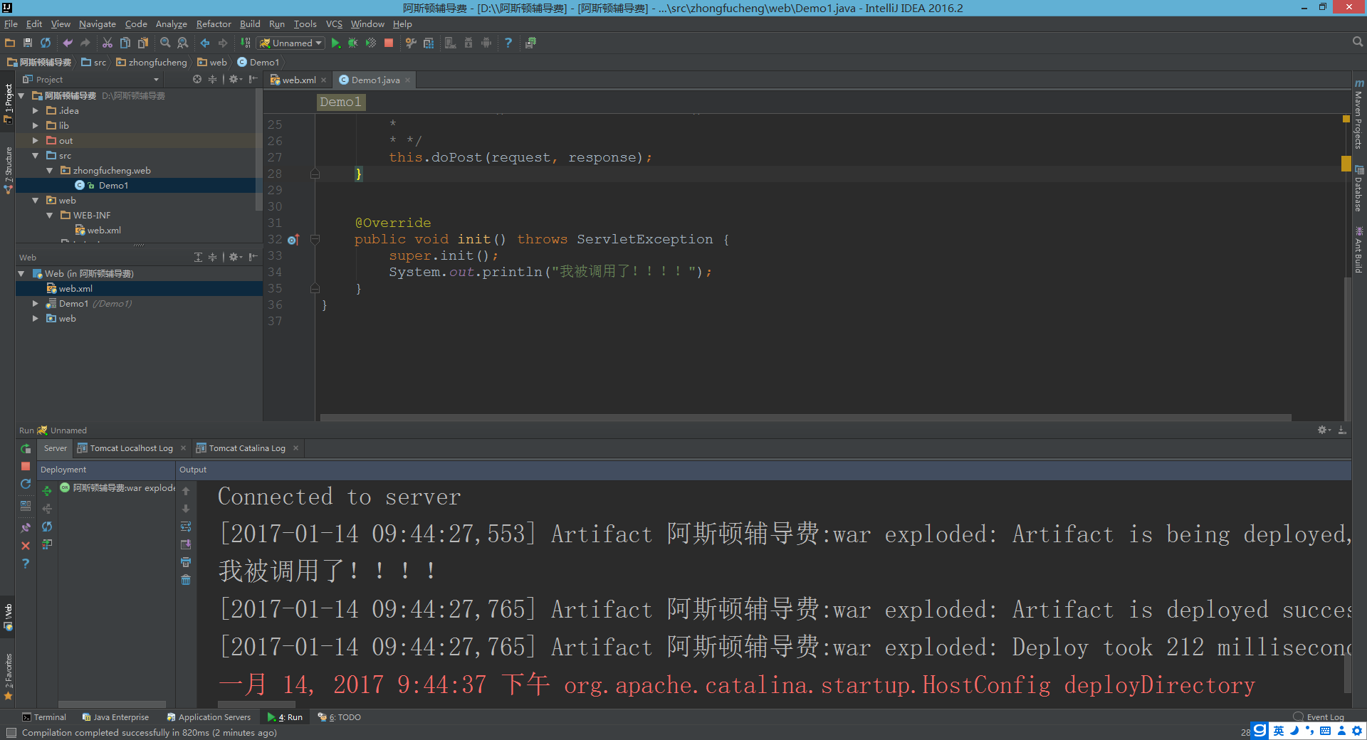 <servlet-class>zhongfucheng.web.Demo1</servlet-class>