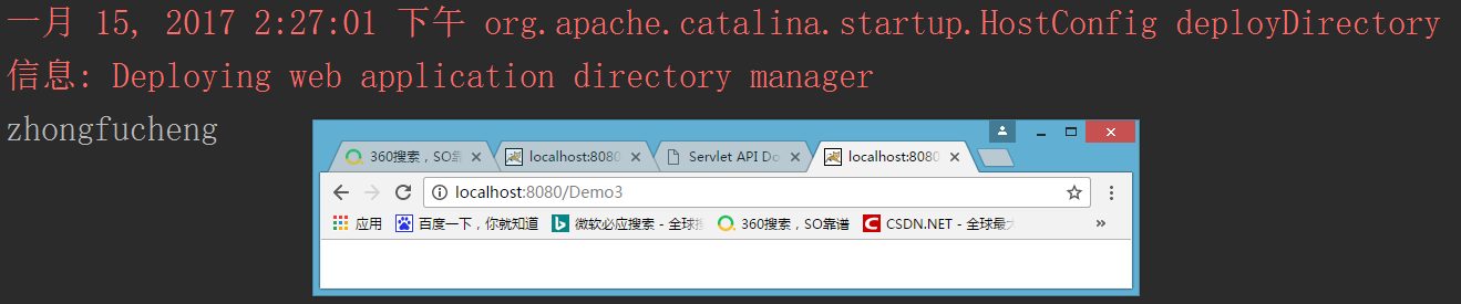 - 下面我继续访问一下刚才的图片,此时输出的是Demo1这个Servlet写上的内容了