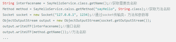 方法的调用使用反射机制,消费者把需要调用的接口名称方法参数通过Socket通道传到服务端,服务端再通过反射机制调用对应的方法获取到值。然后再通过相同方式把结果返回给消费端