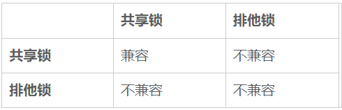 下面用一张表来展示共享锁与排他锁之间的兼容性。