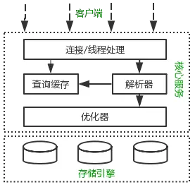 第一层用于对客户端的连接处理、安全认证、授权等。每个客户端连接都会在服务端拥有一个线程,每个连接发起的查询都会在对应的单独线程中执行。