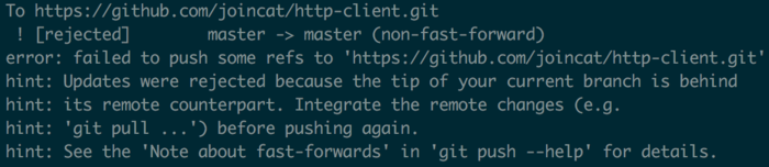 解决failed to push some refs to 'xxx.git' wind瑞_ 2018-02-04 323 阅读1分钟 github上新建完仓库后,使用git将源码push到远程仓库,发生如下错误:image.png原因:在新建仓库时默认勾选了创建README.md,在你push本地代码的时候,这个文件在本地仓库是没有的,而git希望你先把它pull下来合并,然后再操作。解决:使用git pull --rebase origin master 合并代码,然后push就可以了。