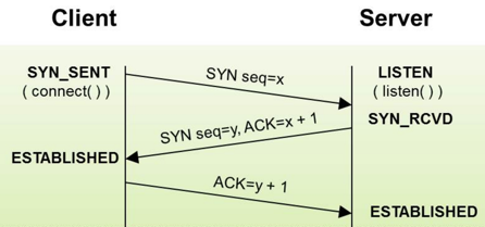 TCP是传输层协议,在进行数据传输之前使用三次握手协议建立连接,大体的过程是客户端发出SYN连接请求后,服务端接收请求后应答SYN+ACK,客户端收到服务端应答后应答ACK,这种建立连接的方法可以防止产生错误的连接,防止已失效的连接请求报文段突然又传送到了服务端。TCP三次握手过程图示如下: