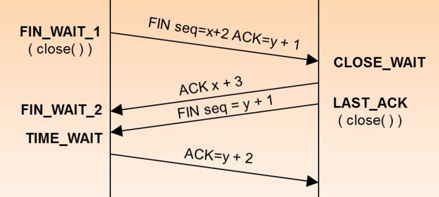 3.服务端完成数据传输后向客户端发送Sequence Number为y+1的FIN报文段,请求关闭连接,服务器进入LAST_ACK状态;