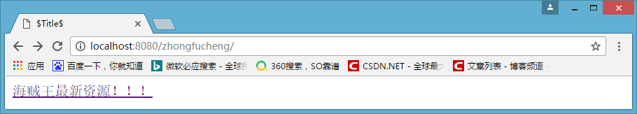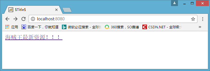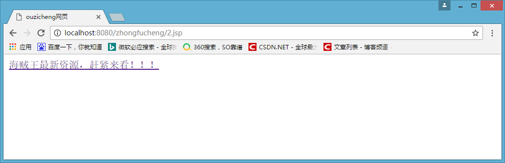- 下面我模拟一下场景。现在我首页先有一个超链接,指向着海贼王最新资源