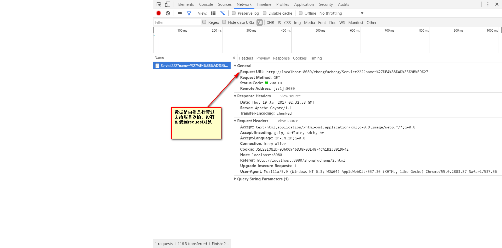 上面已经说了,可以通过sendRedirect()重定向可以在资源尾部添加参数提交数据给服务器。那么转发能不能提交数据给服务器呢?