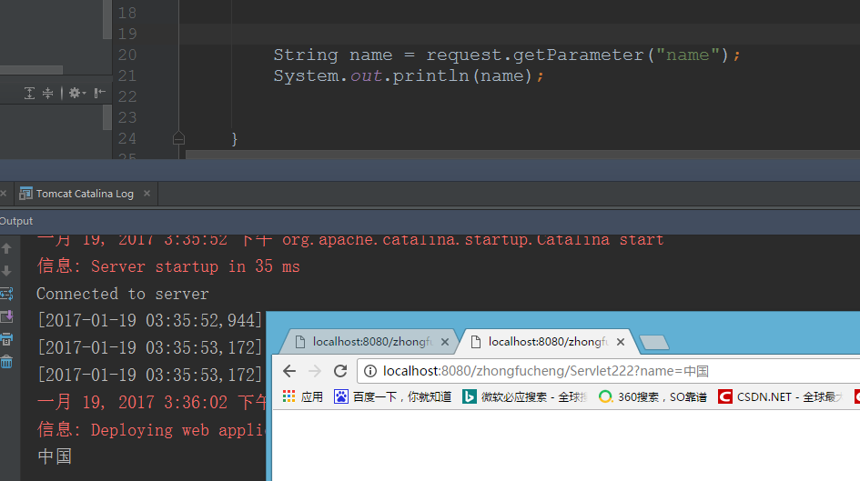 - 访问的时候,看到浏览器可以输出数据,Tomcat后台抛出了异常