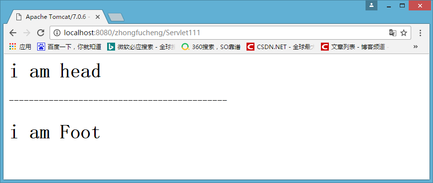 - 访问一下Servlet111,成功把网头和网尾包含了