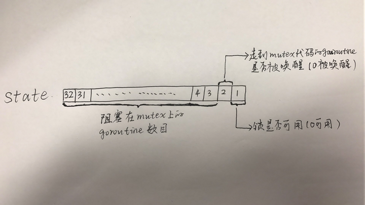 mutexWaiterShift = iota //值为2,表示state中统计阻塞在此mutex上goroutine的数目需要位移的偏移量