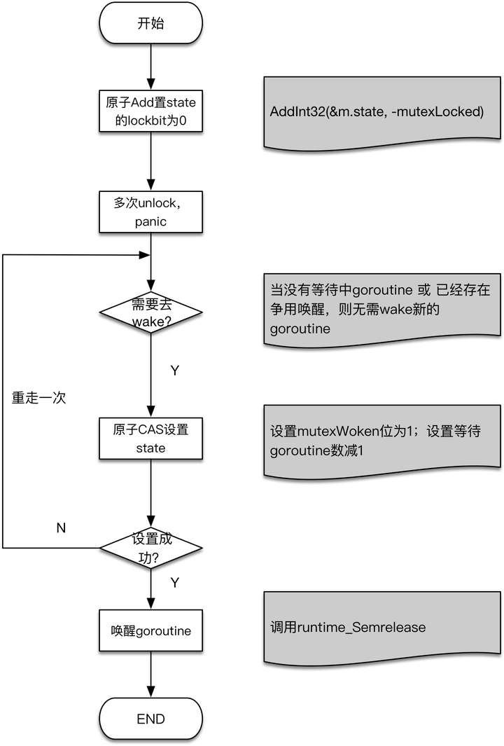 简单来说,就是设置state中的锁标志为0,放开锁,然后根据情况释放阻塞住的goroutine去争抢锁。