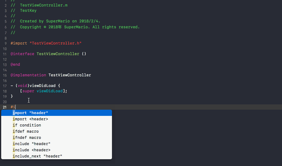 快捷导入,像这样, 很酷吧,需要导入一个工具才可以实现,可以点击这里,Xcode 9 以前用过类似的插件也可以实现这个功能,之前还用Peak君的FastStub-Xcode也挺爽的。