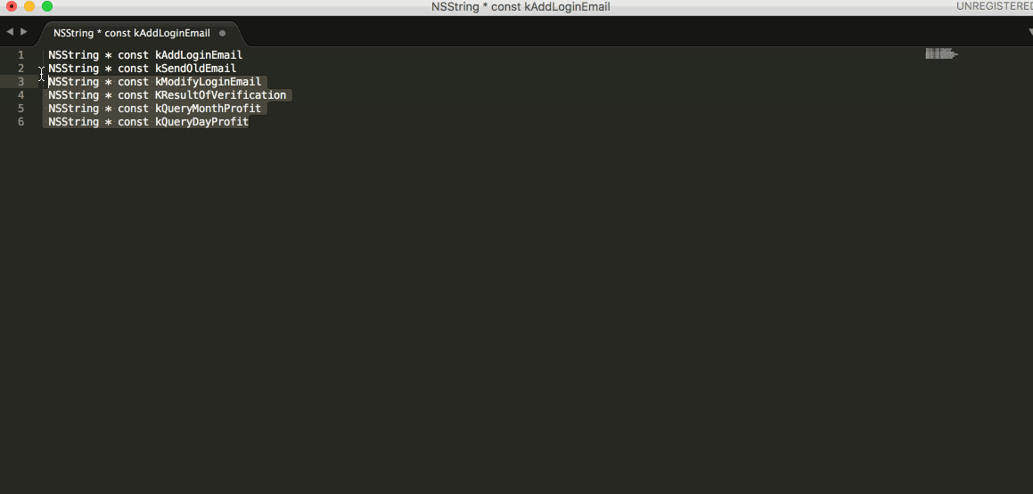 ,退出多行编辑也是Shift + Command + L