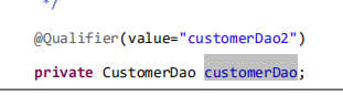 当@Autowired出现多个相同类型的对象的时候(相当于一个接口出现了多个实现类),可以使用@Qualifer指定需要注入的对象.