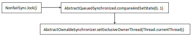 ReentrantLock根据传入构造方法的布尔型参数实例化出Sync的实现类FairSync和NonfairSync,分别表示公平的Sync和非公平的Sync。由于ReentrantLock我们用的比较多的是非公平锁,所以看下非公平锁是如何实现的。假设线程1调用了ReentrantLock的lock()方法,那么线程1将会独占锁,整个调用链十分简单: