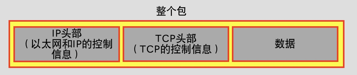 之前在2.2.1已经说过,包是由头部和数据两部分构成,头部包含了目的地址等控制信息,在前面我们讲了TCP头部的内容,从2.2.1的图上可以看到在TCP头的前面还有一个IP头部,在那张图里面将IP头部表述为以太网和IP的控制信息,实际上他们并不是一个头而是两个不同的头,分别为MAC头部与IP头部。而IP模块则负责给TCP委托过来的数据包添加MAC头以及IP头。