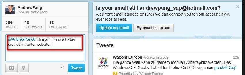 例如客户在Twitter官网上发一条@AndrewPang6的tweet, 文本内容如下: