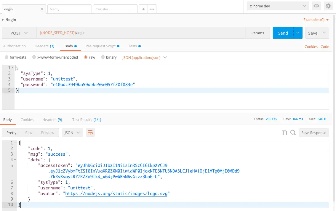 提供了3个基于jsonwebtoken (jwt) 的接口示例: 注册, 登录, 验证.