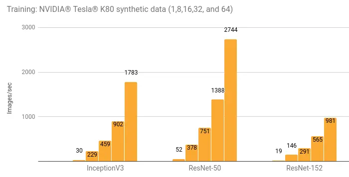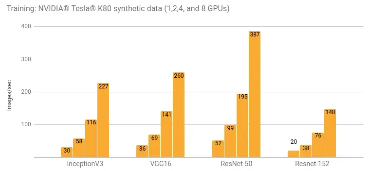 为了创建尽可能重复的结果,每个测试运行 5 次,然后取平均值。在给定的平台上,GPU 是在默认状态下运行的。对于 NVIDIA® Tesla® K80 来说这意味着不使用 GPU Boost。