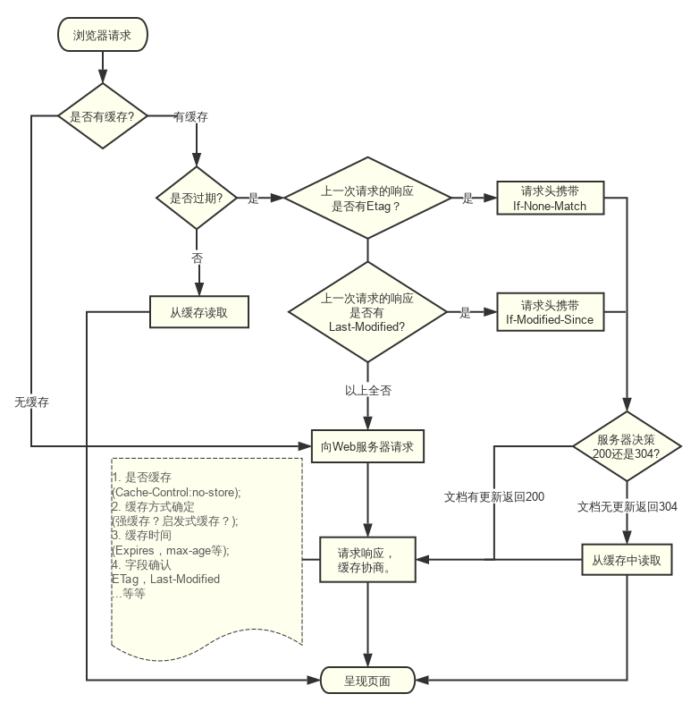 我画了下面这张图,来解释浏览器整个缓存策略的过程:
