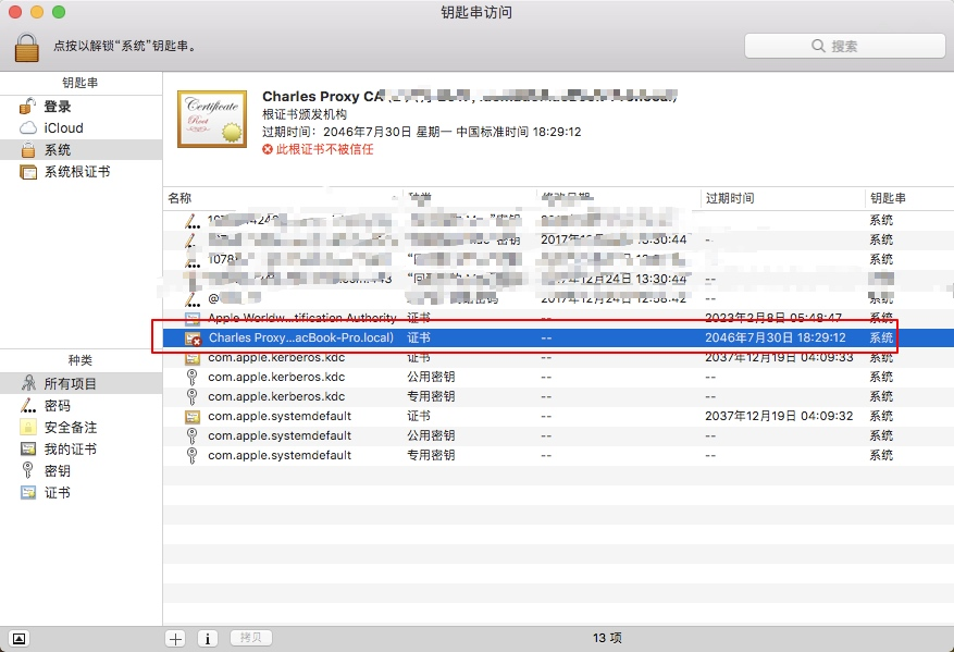 Help->SSL Proxying->Install Charles Root Certificate - 输入系统密码进行授权