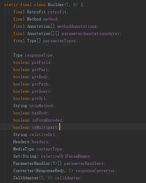 首先Retrofit采用建造者模式,这种模式大家应该都不陌生了,这里就不多介绍了。