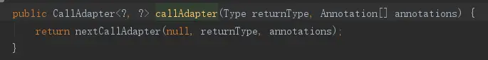 public CallAdapter<?, ?> nextCallAdapter(@Nullable CallAdapter.Factory skipPast, Type returnType,
