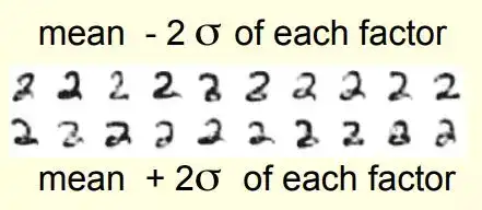 冗余带来的好处,从下图可以看出,这里展示了如果对于每一个胶囊给出的intensity值加上或减去两个标准差后,网络重构出来的图像会是怎样,可以看出,图形基本还是能识别成原始的2的,这说明网络具有鲁棒性,不会像CNN一样,仅仅因为一两个像素点的改变,就将图形识别错误。