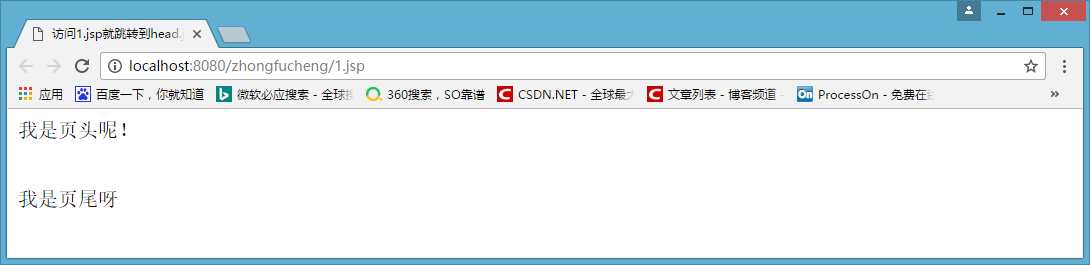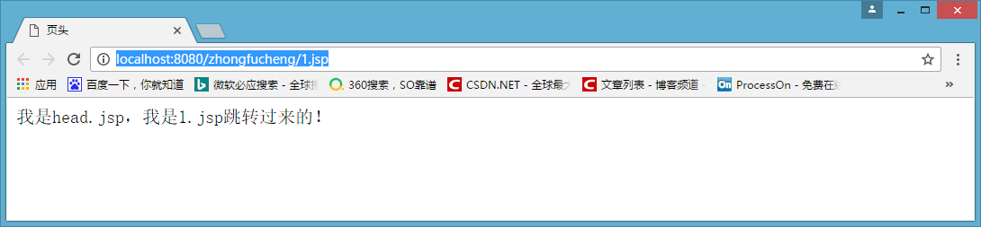 - 好的,我们来使用一下吧。访问1.jsp页面就跳转到head.jsp页面中