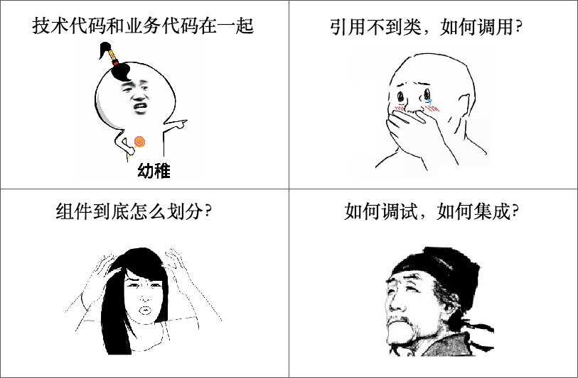 - 对于技术组件,合理封装,注意不要放在一起,避免技术组件库巨大无比;