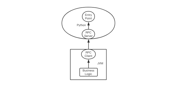 Py4j除了可以让Python自由操纵Java外,还可以通过Java直接操纵Python代码,实现了Python和JVM之间的双向交互。只不过逆向操作没有正向的自由,因为Java语言不是一个动态的语言,任何方法的调用都必须预先定义。所以对于Python服务的入口类,需要映射到Java端定义的一个相对应的接口类,Java通过接口函数来调用Python代码。