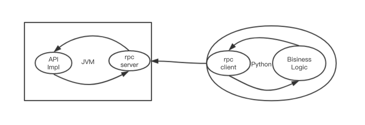 Py4j在JVM进程开辟一个ServerSocket监听客户端的链接,来一个链接开辟一个新线程处理这个链接上的消息,对于共享对象的状态,在JVM端实现API时需要考虑多线程并发问题。