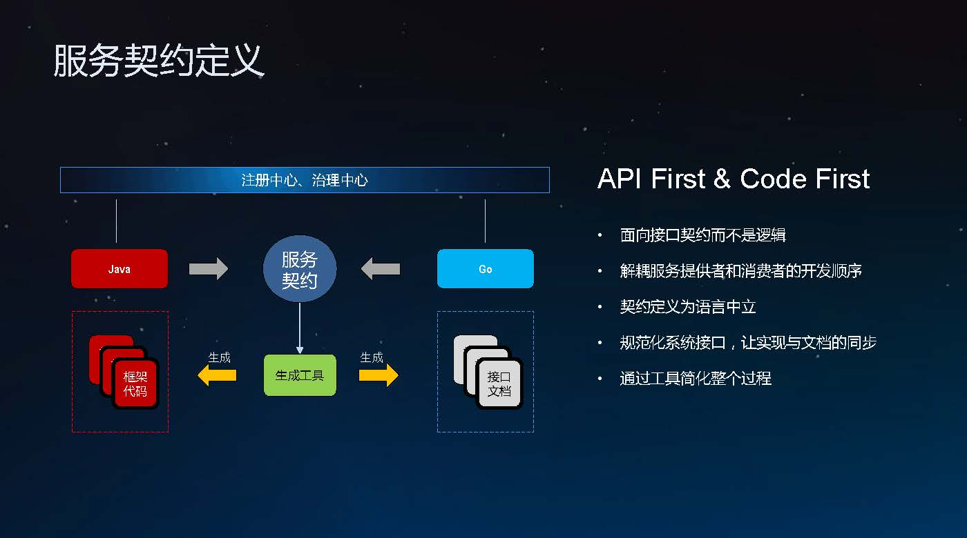 面向接口契约而不是逻辑,通过工具可以根据契约生成相关的桩代码或者服务调用程序;