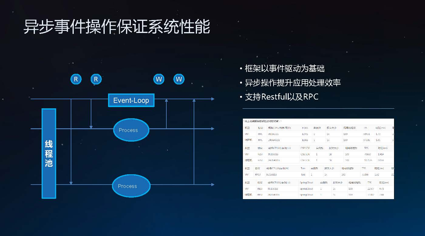 整个框架以事件驱动为基础,用Event-Loop这种方式进行处理,这样带来最大的好处就是不会有太多的线程切换。通过异步操作可以极大提升应用处理效率。目前为ServiceCombJavaSDK事件处理框架不但支持Restful协议而且还支持RPC协议。