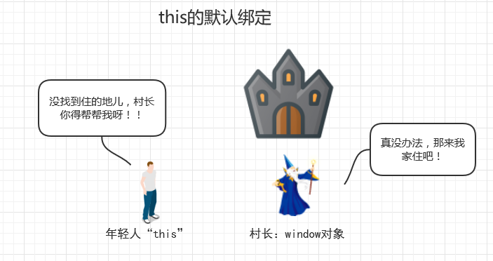 【故事——线路1】如果迪斯(this)直到天黑前都没有找到能收留自己的住所,他眼看就要过上非洲难民的生活, 这时候,一位乐善好施的魔法师村长——window救世主一般地出现了:先住在我家吧!