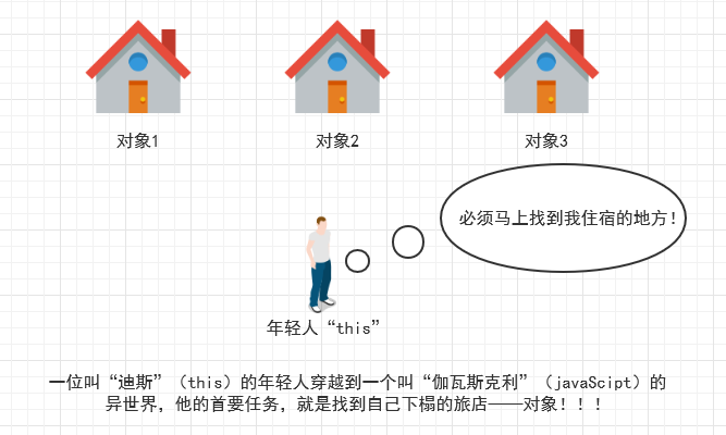 【故事——线路3】 迪斯(this)穿越来异世界“伽瓦斯克利”(javascript),经过努力的打拼,积累了一定的财富,于是他买下了自己的房子