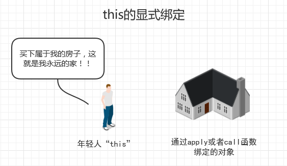 call和bind的区别是:在绑定this到对象参数的同时: 1.call将立即执行该函数 2.bind不执行函数,只返回一个可供执行的函数 【其他】:至于apply,因为除了使用方法,它和call并没有太大差别,这里不加赘述 在这里,我把显式绑定和隐式绑定下,函数和“包含”函数的对象间的关系比作买房和租房的区别。