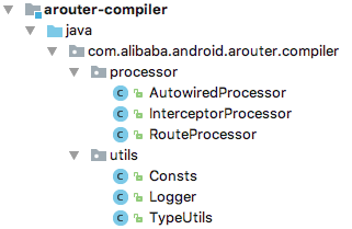AutoWiredProcessor、InterceptorProcessor、RouteProcessor分别为annotation模块对应的Autowired、Interceptor、Route在项目编译时产生相关的类文件。