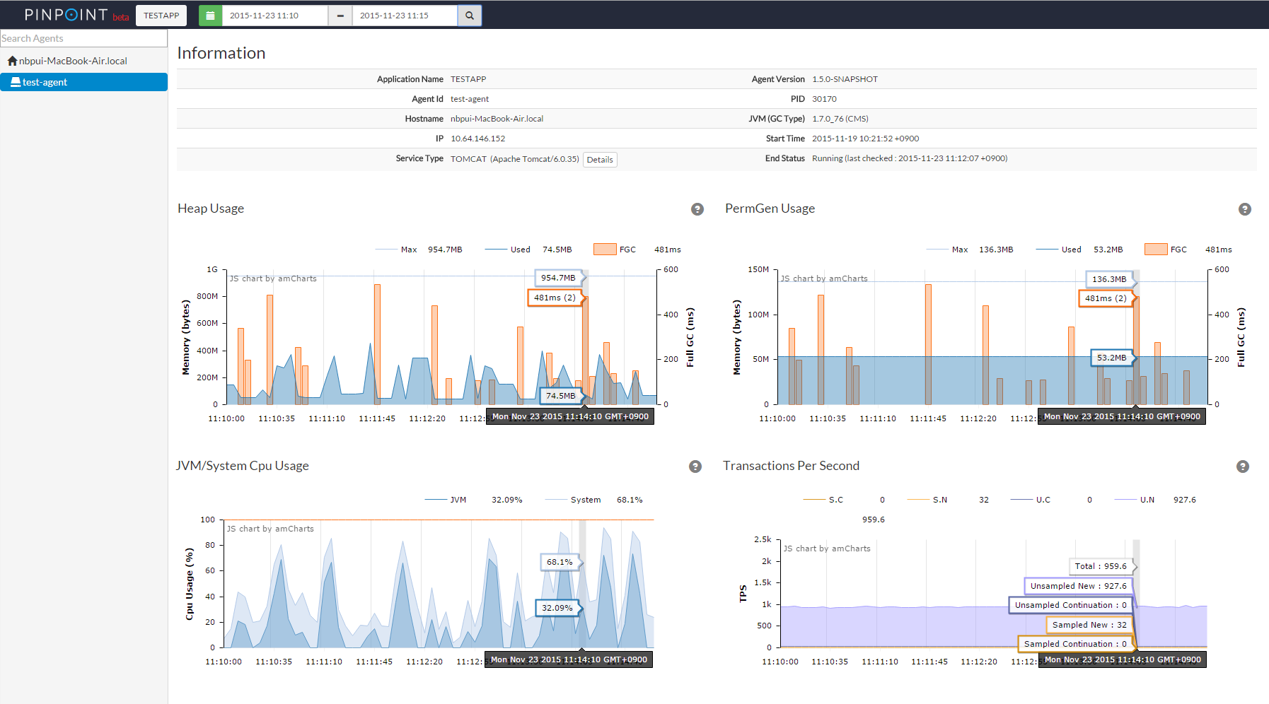 - Pinpoint-Collector:收集器,收集各种性能数据