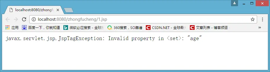 <%--target属性只能是EL表达式,现在我是字符串,获取不到对象,肯定会抛出异常的!--%>
