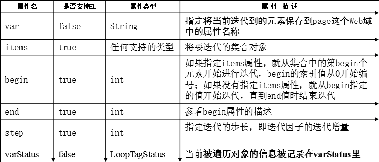 varStatus代表着当前对象被迭代的信息,它有以下的属性。