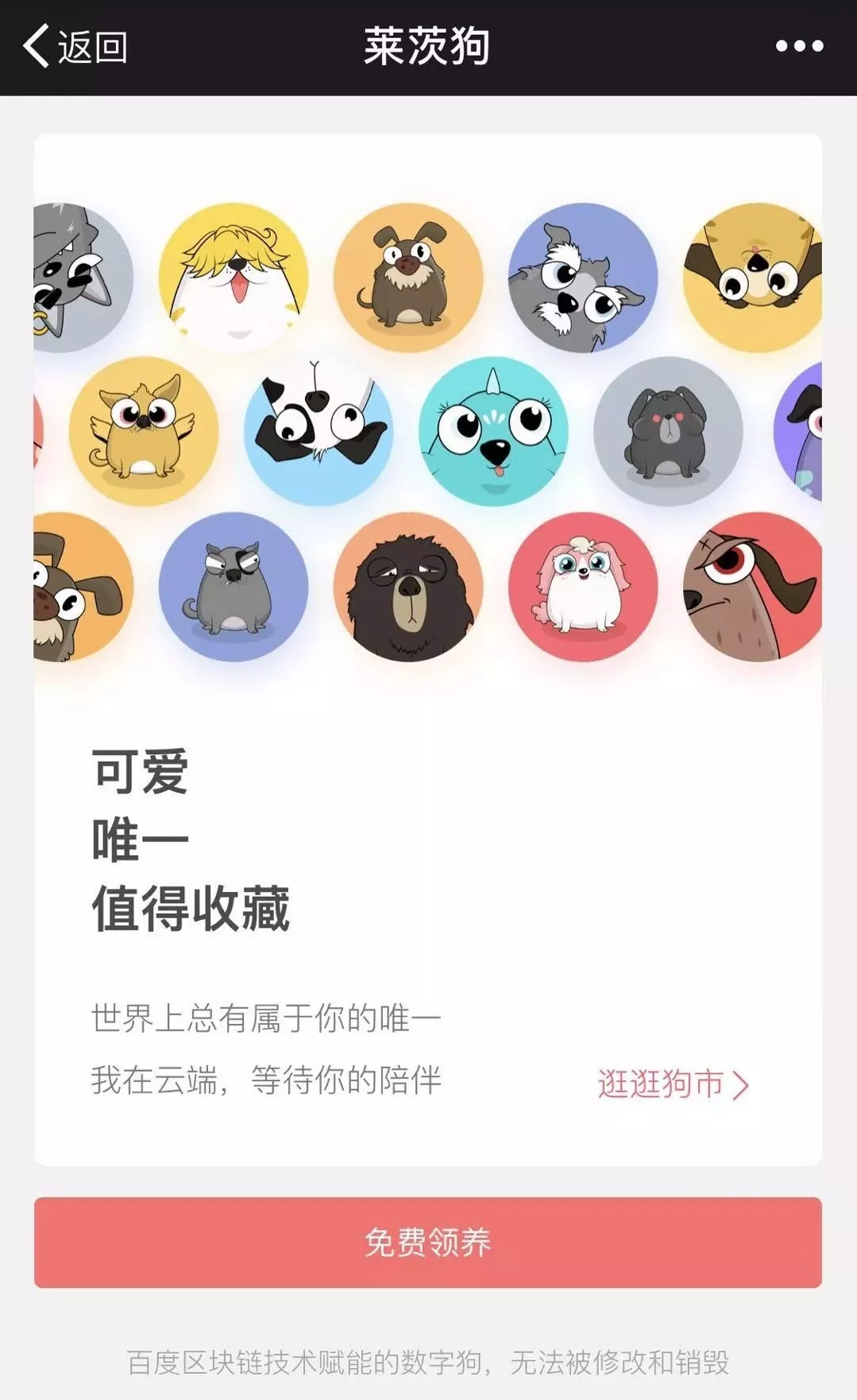 网易招财猫内测结束,猫还没看见长什么样,直接退钱了。区块链宠物这个东西,引得各路人马前仆后继,比如百度被曝出已经在网络上推出了一个“区块链宠物项目”——莱茨狗。