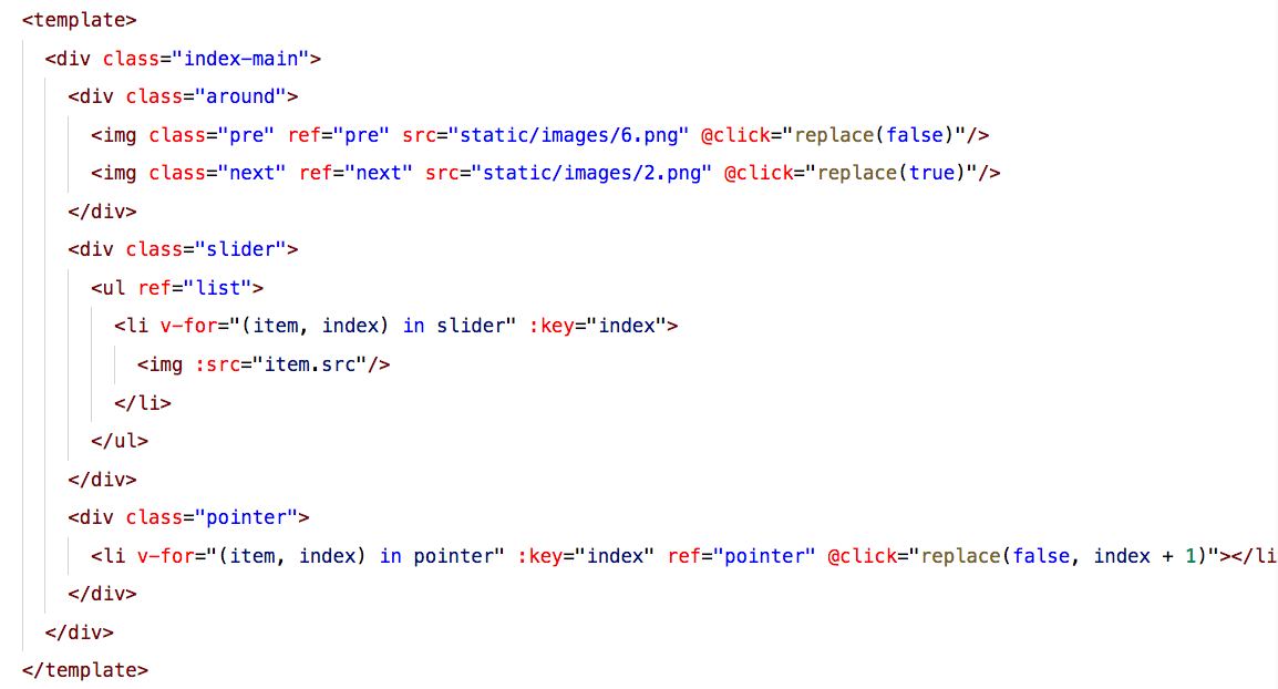 这样,轮播图的样式就写好了,接下来该写 js 来实现自动播放、左右切换以及点击圆点跳转。 这里的逻辑挺简单,就不一一叙述了,主要注意两个临界点,当前图片为第一张与最后一张这两种情况下左右图片的展示以及点击切换的逻辑。